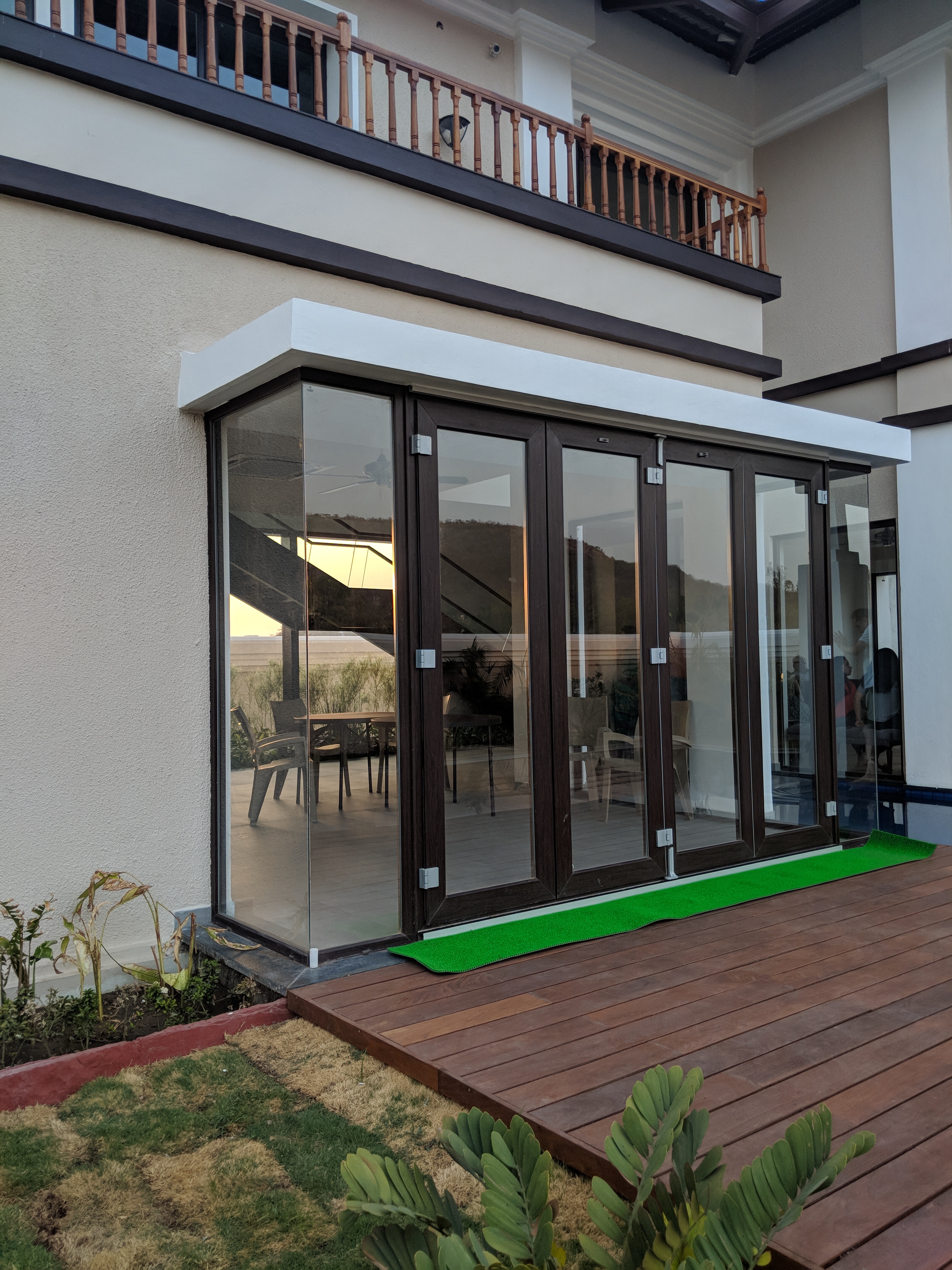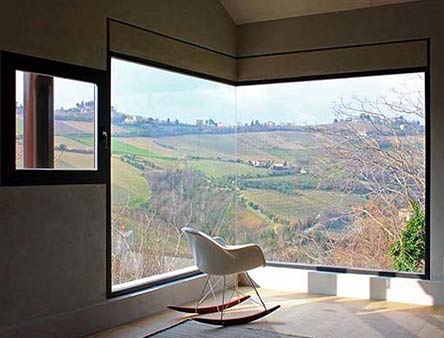 In Glass to Glass windows, the glass panes meet at an angle of 90 ° and are neatly joined together without using any mullions. Extremely stylish, these corners create an attraction from outside as well as inside, offering large seamless views, allowing maximum sunlight to enter.