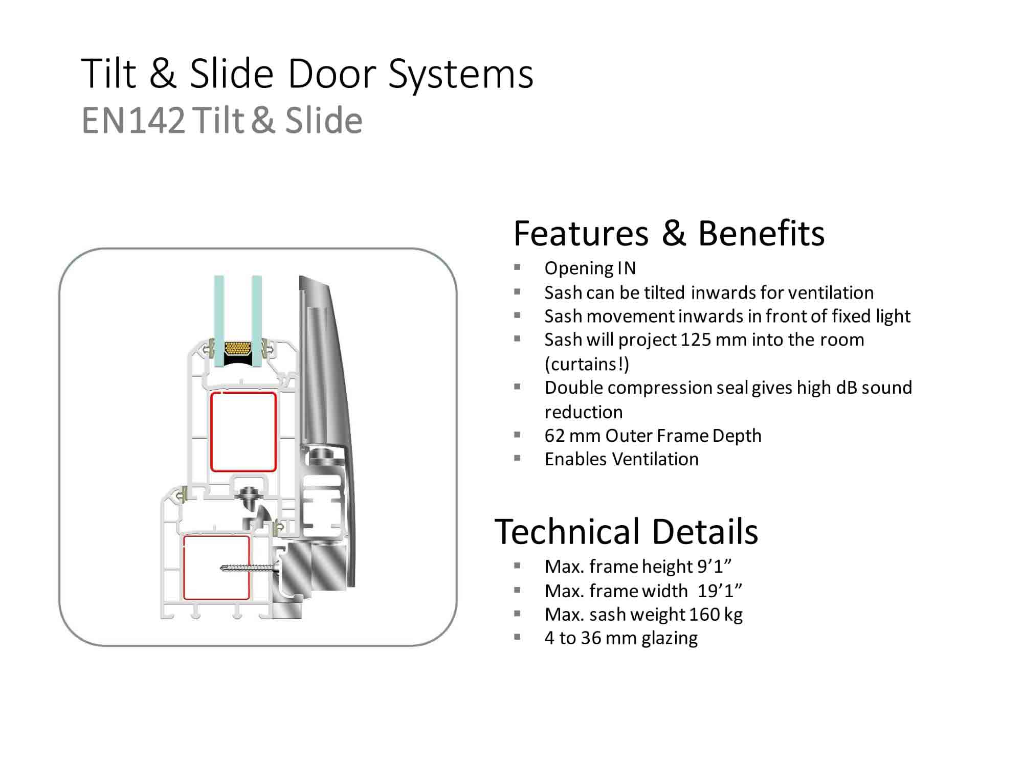 Tilt & Slide doors are a space saving solution if the space is limited. They can be opened fully by sliding or tilted inwards for efficient ventilation. Tilt & Slide doors achieve a better insulation than standard sliding windows and doors. They also give you a tilt option, which is perfect for ventilation while keeping your home secure from intruders.